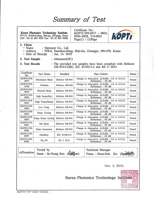 인증 | GR 910 test (광감쇠기)
