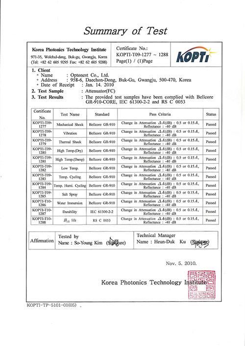 TEST 기관 : KOPTI