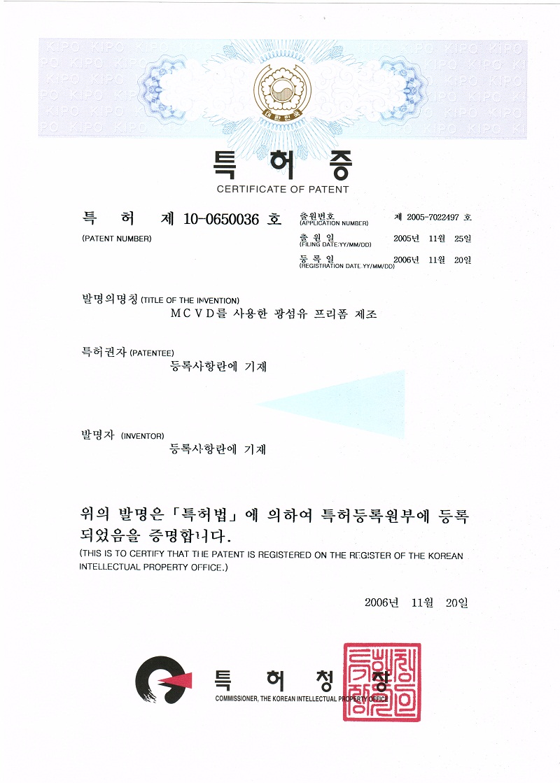 특허 | (대한민국) MCVD를 사용한 광섬유 프리폼 제조 페이지 정보 작성자 관리자 작성일11-08-05 21:18 조회17,834회 댓글0건 관련링크 이전글 다음글 목록 본문 (대한민국) MCVD를 사용한 광섬유 프리폼 제조 댓글목록 등록된 댓글이 없습니다. 이전글 다음글 목록